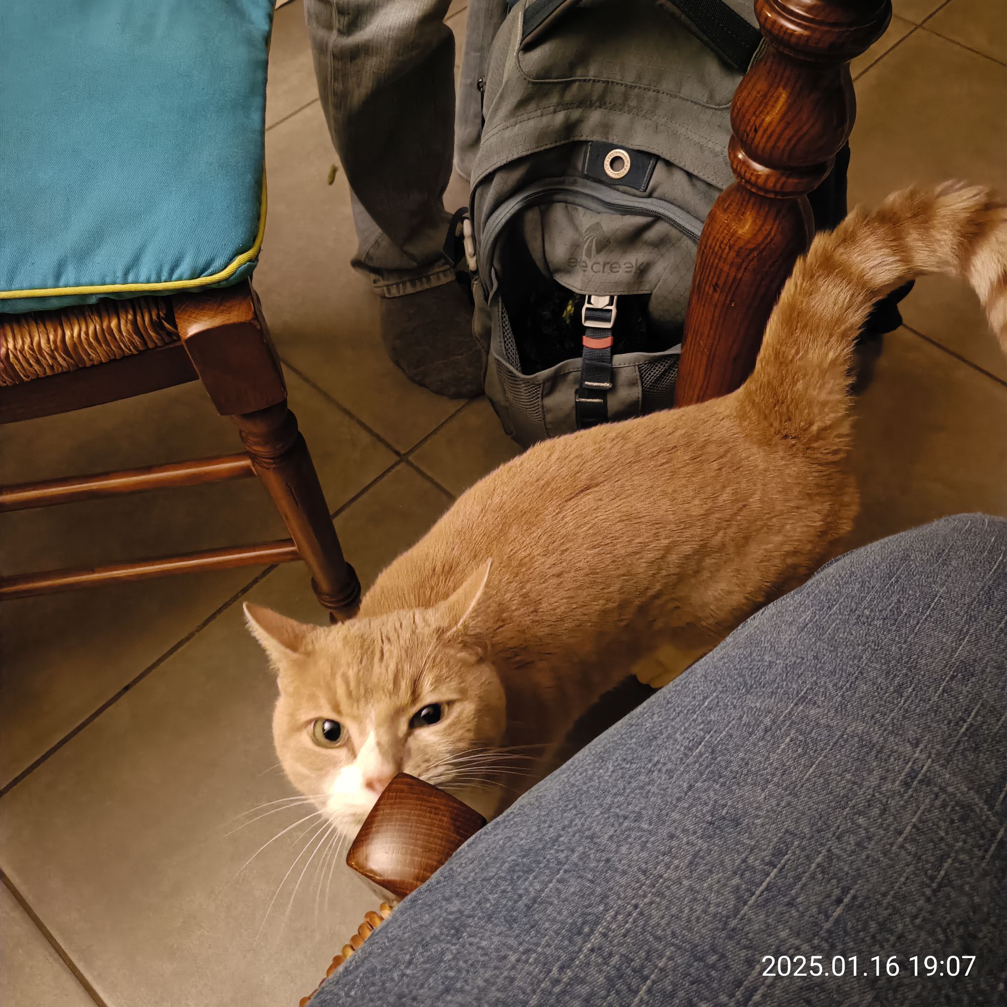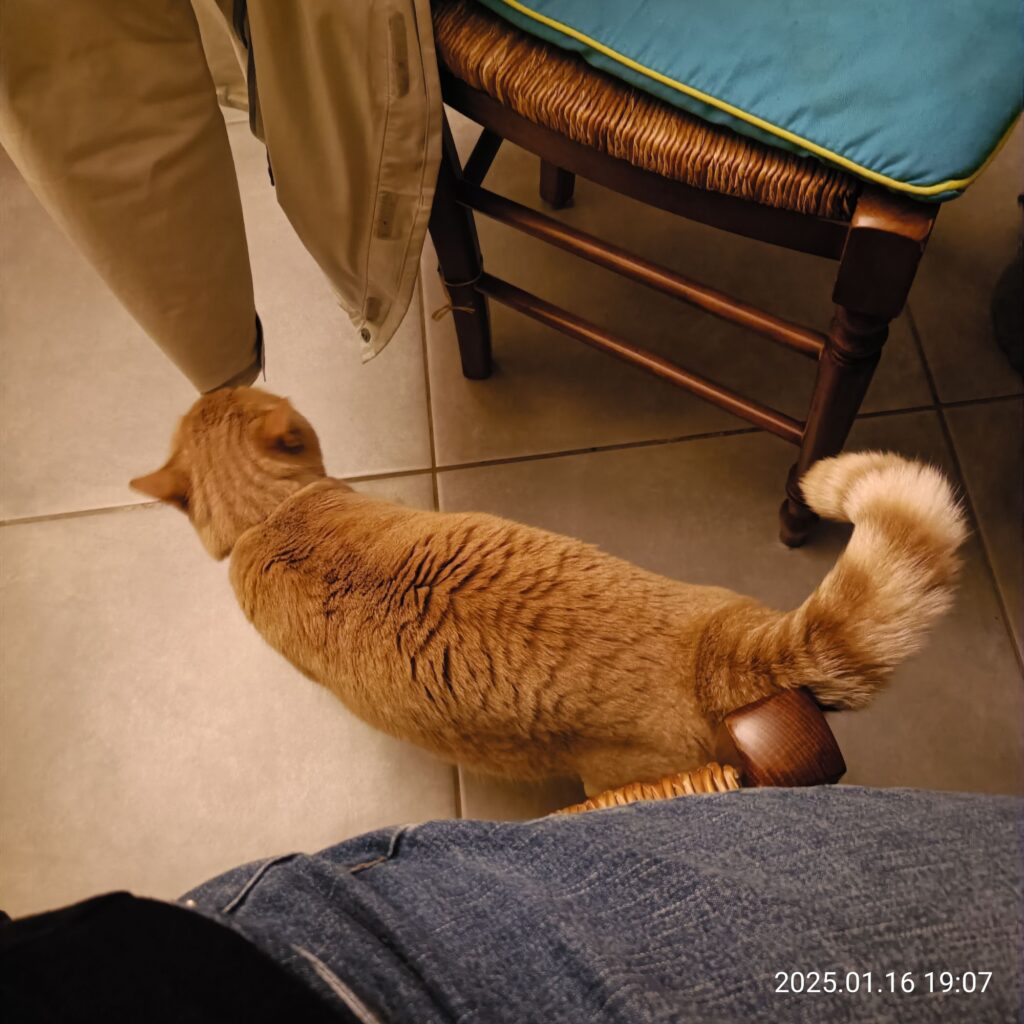 なかなかに人懐っこい猫ちゃんで足の間を行ったり来たり。