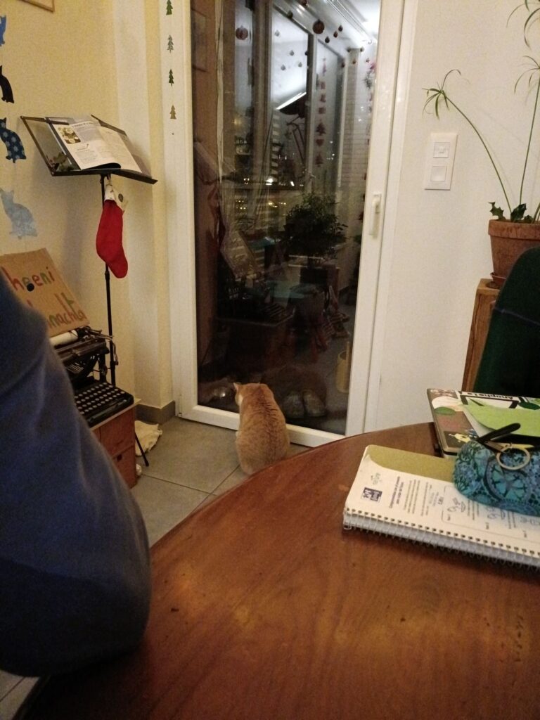 ご不満なのかにゃーにゃー言ってる(笑)一回膝の上にも乗ってくれて幸せの極みでした😍かわいいにゃんこに(ミーティングそっちのけで😅)癒されました。