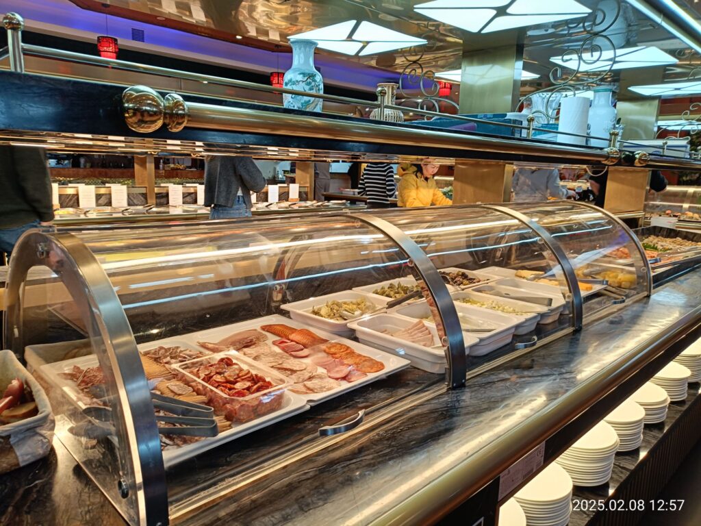 特に時間制限はないのですが、お昼は営業時間が12時~14時半なのでMax2時間半の滞在になります。私たちは12時45分くらいについて閉店くらいまで滞在しました。お店の人が順次席を周り、開いたお皿は下げてくれるので常に新しいお皿を使えました。ただ片づけがあまりに早くてデザートまだ食べてる途中だったのに一度席を立ったらスプーンがなくなっていました😅お店はおそらく中国系の人が運営してるようで従業員同士の会話は中国語のようでした。洗練されたお店と言うわけではないですが、いい意味で気楽に食べられるのがいいなと思いました。連れていってくれたおじいちゃんおばあちゃんに感謝です😊