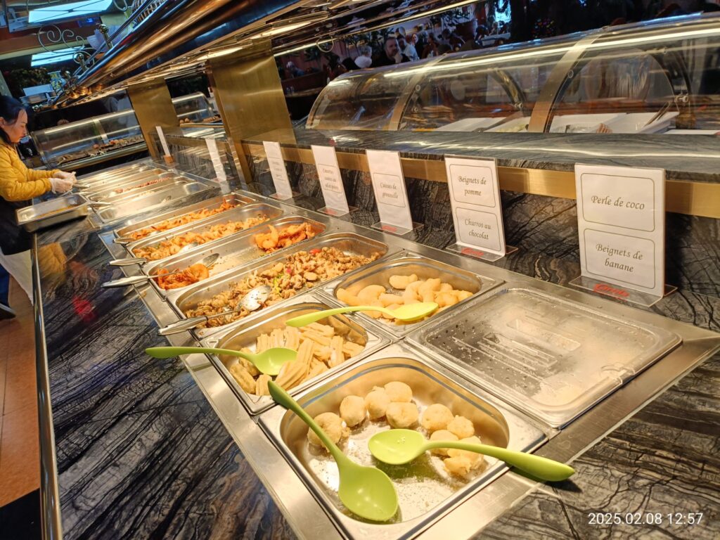 こちらは海鮮系おかずのコーナー。なぞにチュロスやバナナのフライもあります(笑)