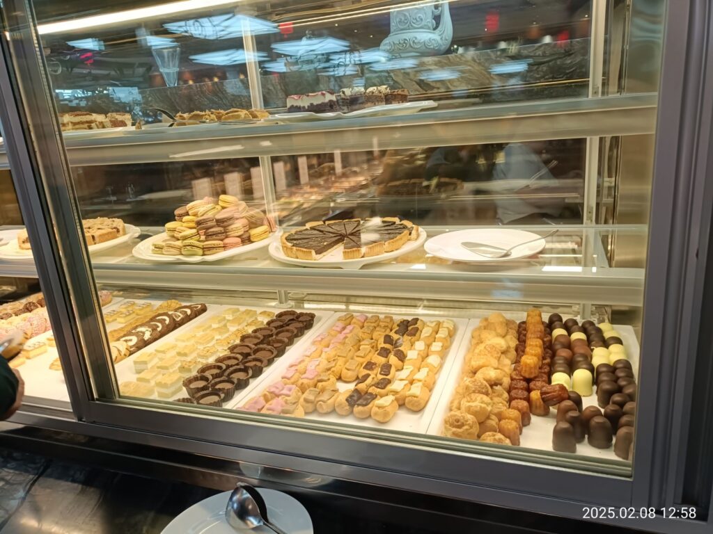 お菓子系も色々。ただものによってはちょっと乾いてもそもそしているものも😅この横にあったパンナコッタやティラミスなどの冷製デザートはフレッシュでおいしかったです。