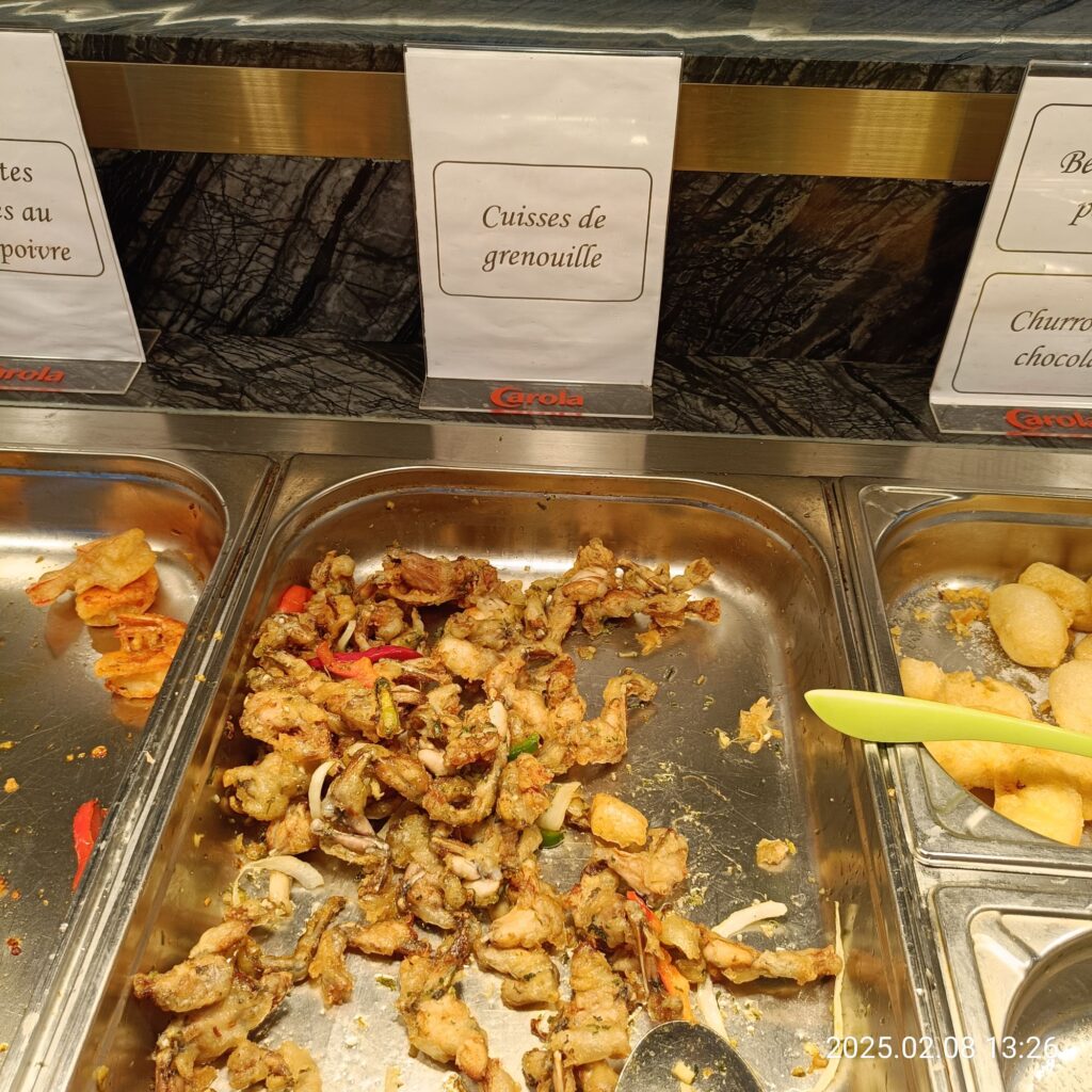 こちらはなんとカエルの太ももから揚げ😮味は鶏肉に似てるらしいですが、今回は遠慮しました…😅