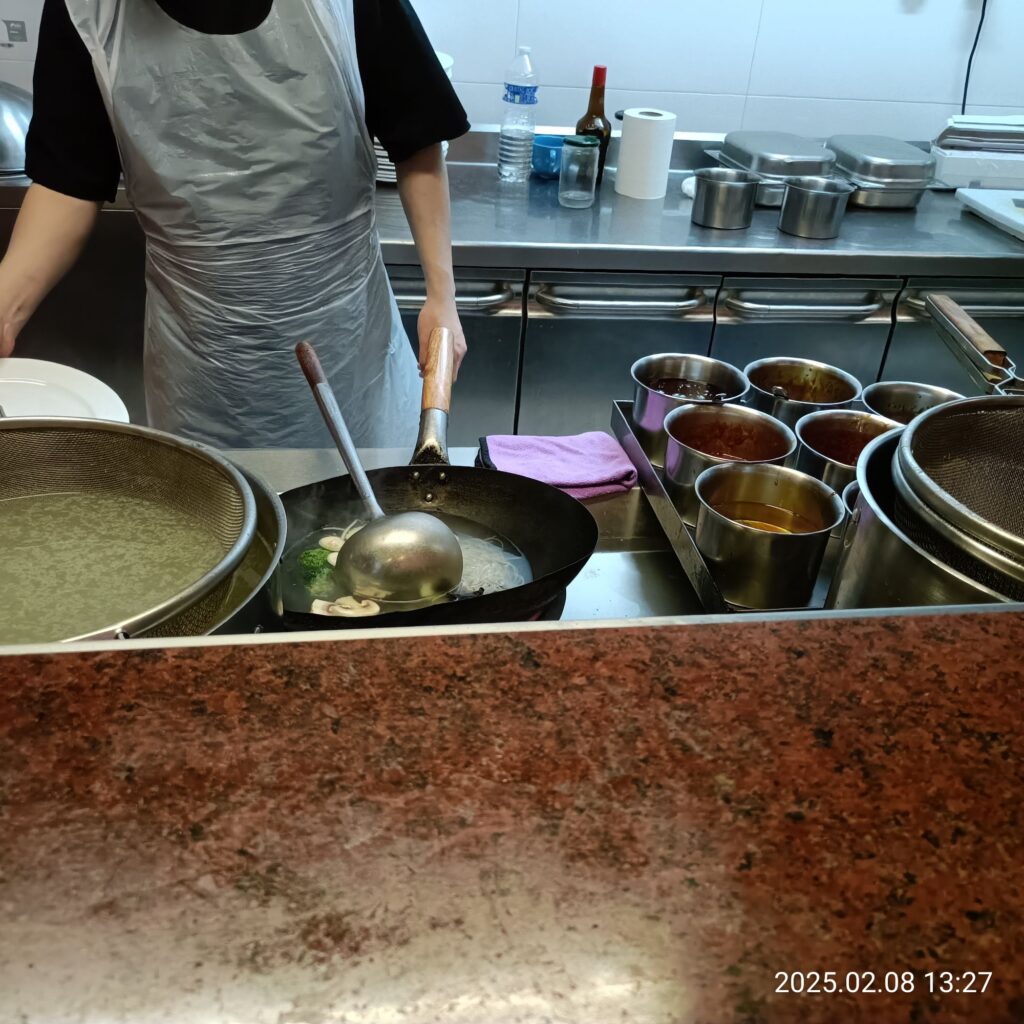 完成品がこちら!野菜ときのこのWOK、シェフのソース(ニンニクソースとのこと)です。しょうゆベースの食べやすい味付けでした😋ベジタリアン向けのメニューが少なかったのでこのWOKがあって良かった!