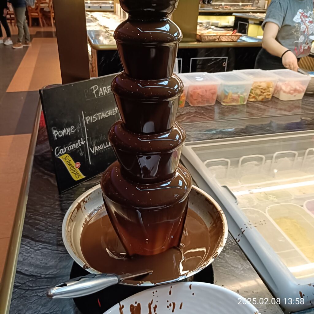 なんとチョコファウンテンまで。この横に10種類くらいのジェラートコーナーもありました。