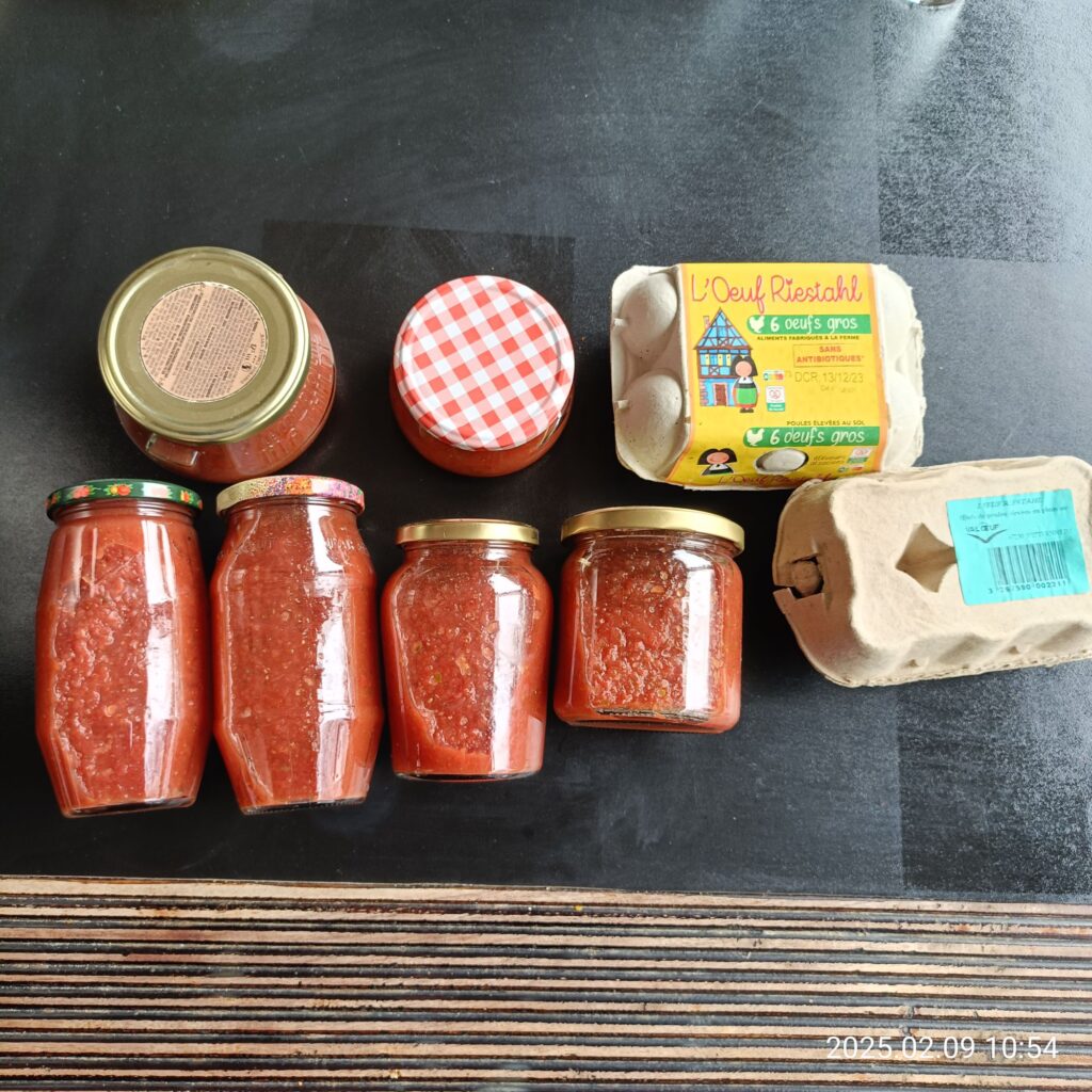 お散歩の後はお茶しながらおしゃべり。いつも帰り際に色々お土産をくれるのですが、今回は自家製トマトソースと平飼い卵をくれました。トマトソースは夏にたくさん作ったのをこうやってストックしておいて一年中食べるみたいです。瓶詰食品は冷蔵庫がなかった時代の生活の知恵。保存のエネルギーもかからないし、旬の食材を長く保存できるしいいことばかり。私も自分の台所を持ったらいろいろ瓶詰保存食を作りたいなと思っています😊