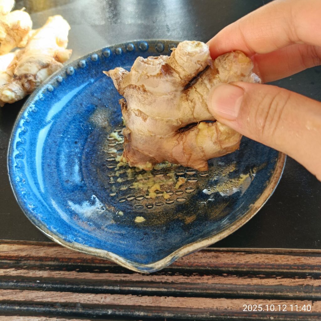 ショウガをすり下ろしてみました。一般的なおろし器のように目に繊維が詰まらず使いやすい!