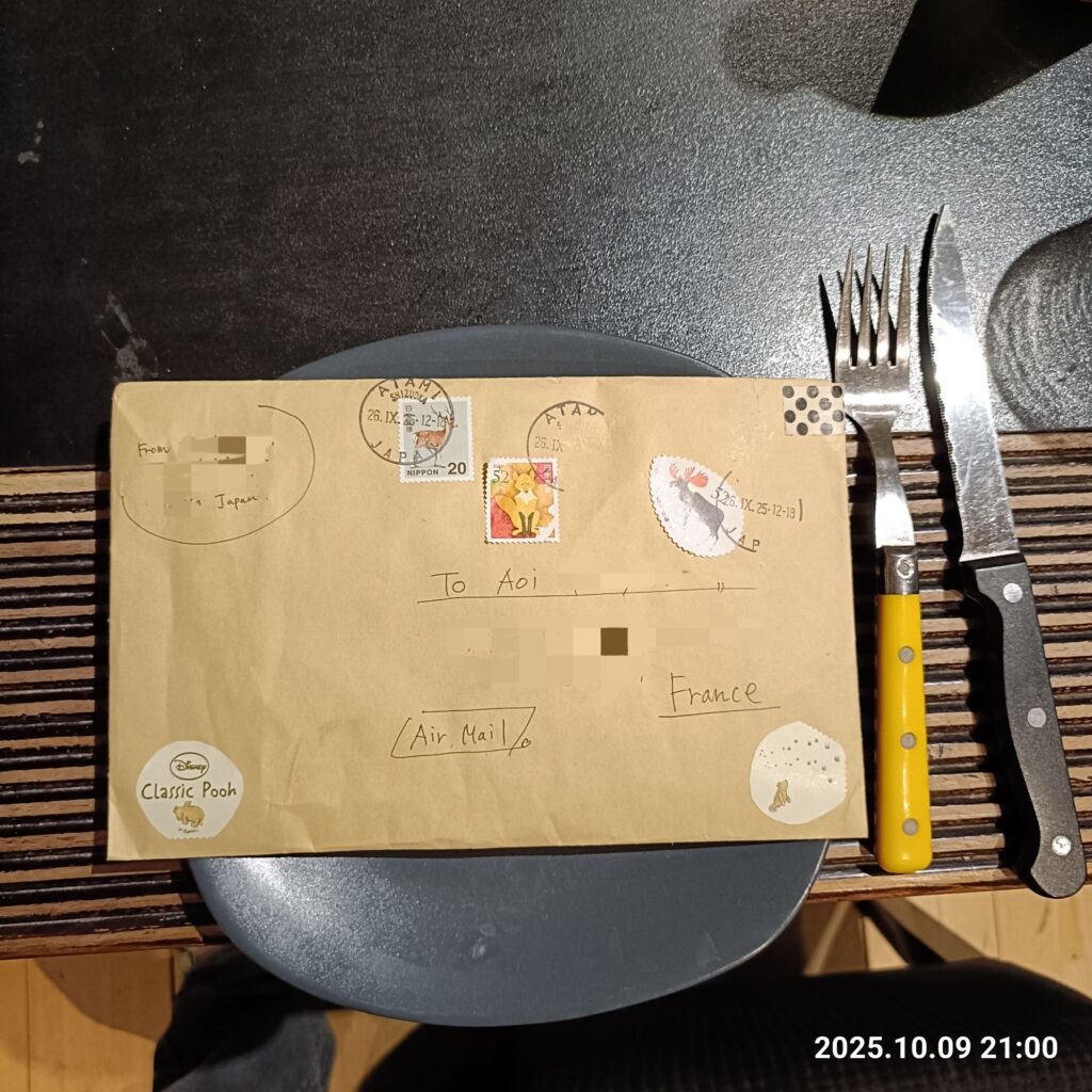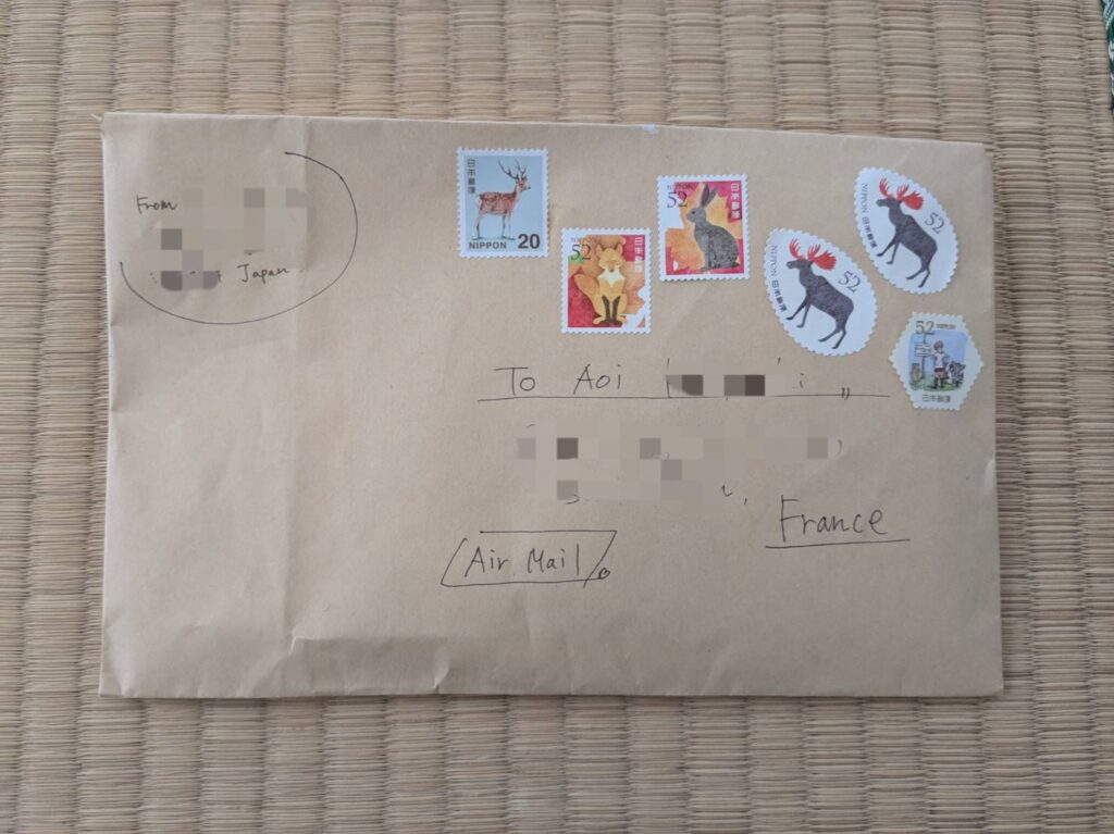 この手紙、出したときはこれだけの切手が貼ってあったのに届いたときは半分になってました😅フランス相変わらず適当だな…(笑)