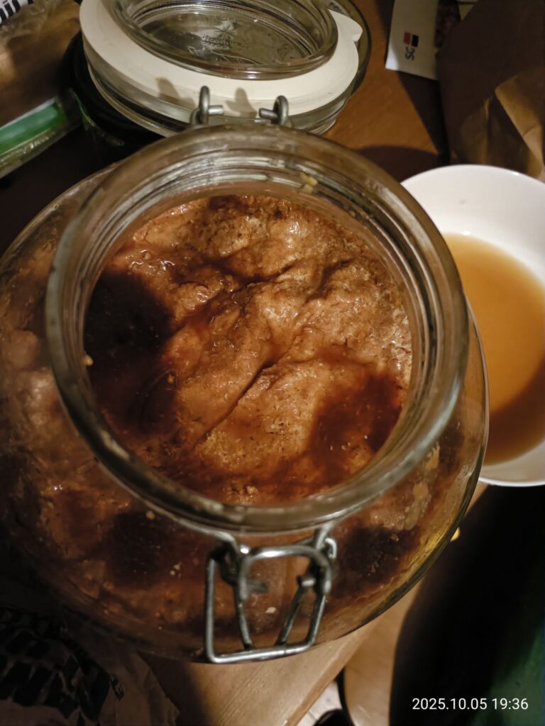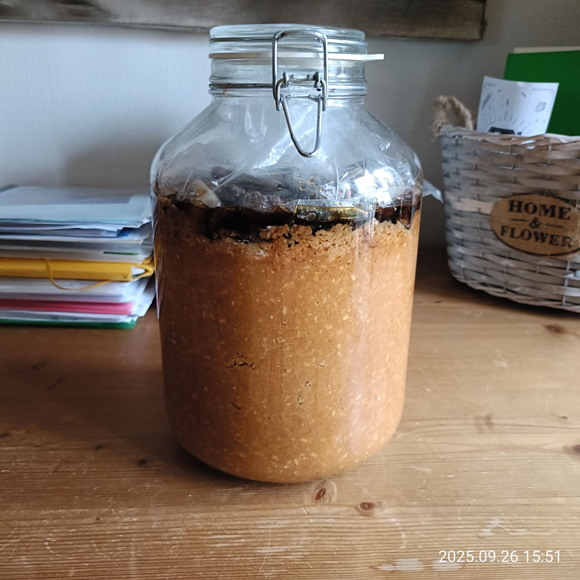 ちょうど1年ほど前に仕込んだ味噌がいい感じになったのでこれで完成とします(仕込みの様子はこちら)😁仕込んだときはベージュ色だったのが熟成して茶色に変身。
