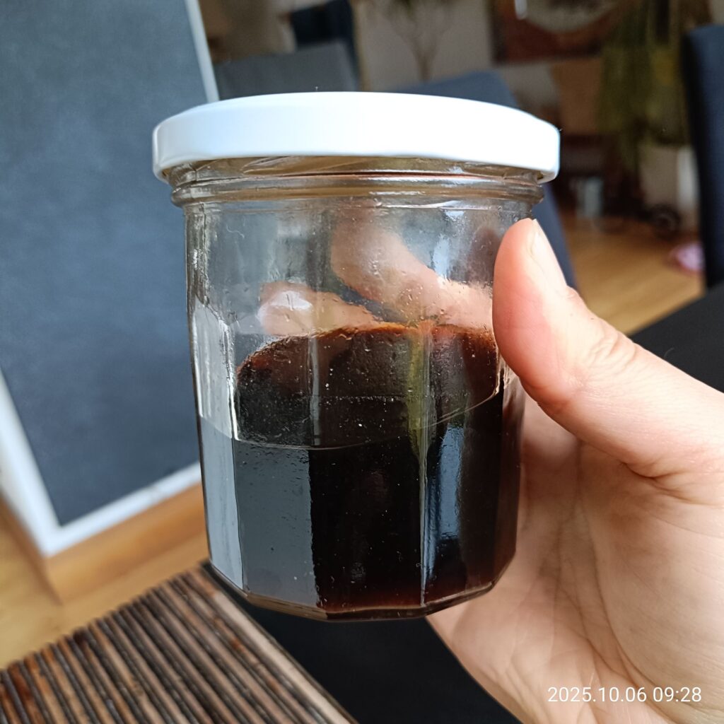 調べてみるとこの液体は「みそたまり」と呼ぶようで、味噌を作る過程で自然に染み出し、表面をカビから守ってくれるようです。こちらのみそたまり、濃厚な醤油のようで旨味もたっぷり!4kgくらいの味噌を作ってこれだけしか取れない貴重な調味料、うまく活用したいです😁