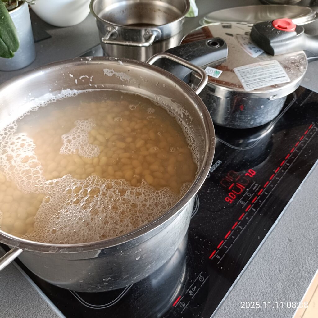 今年も来年用の味噌を仕込みます😊前日から水に漬けておいた大豆を柔らかくなるまで煮ます。
