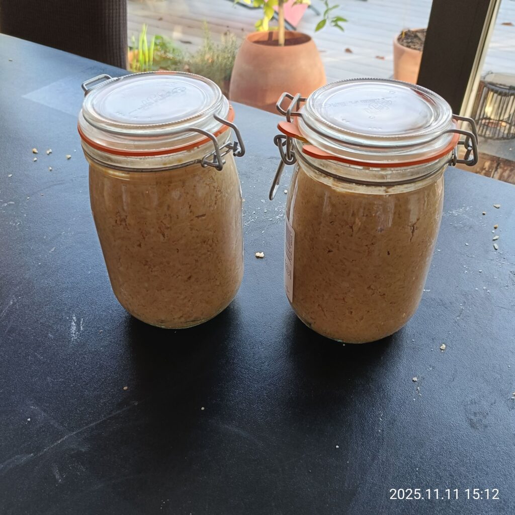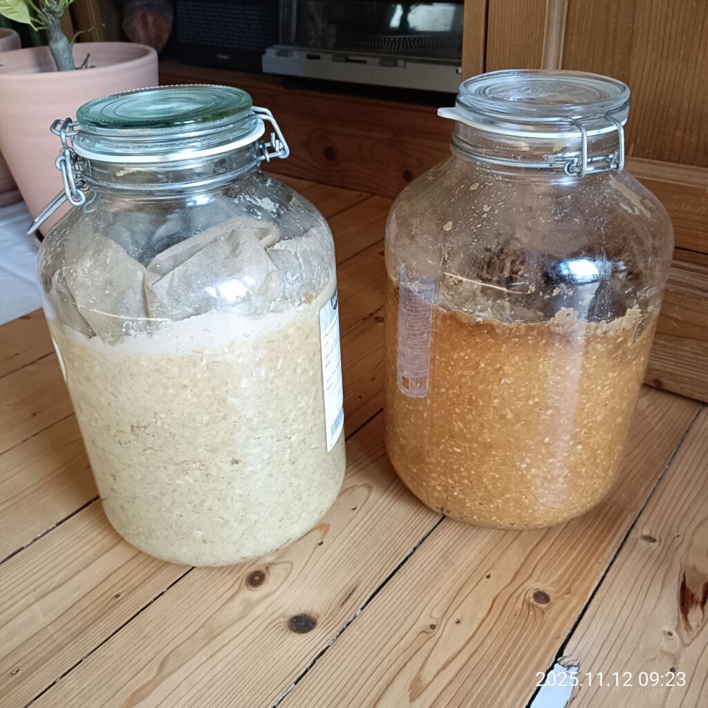 翌日、去年作ったものと比べてみたら明らかに色が違う!作ったばっかの時はただのしょっぱい大豆ペーストなのに、時間を置くとうまみたっぷりの味噌になるから本当に発酵って神秘😍さて、今年のお味噌はどんな味になるのか、のんびり待とうと思います😊