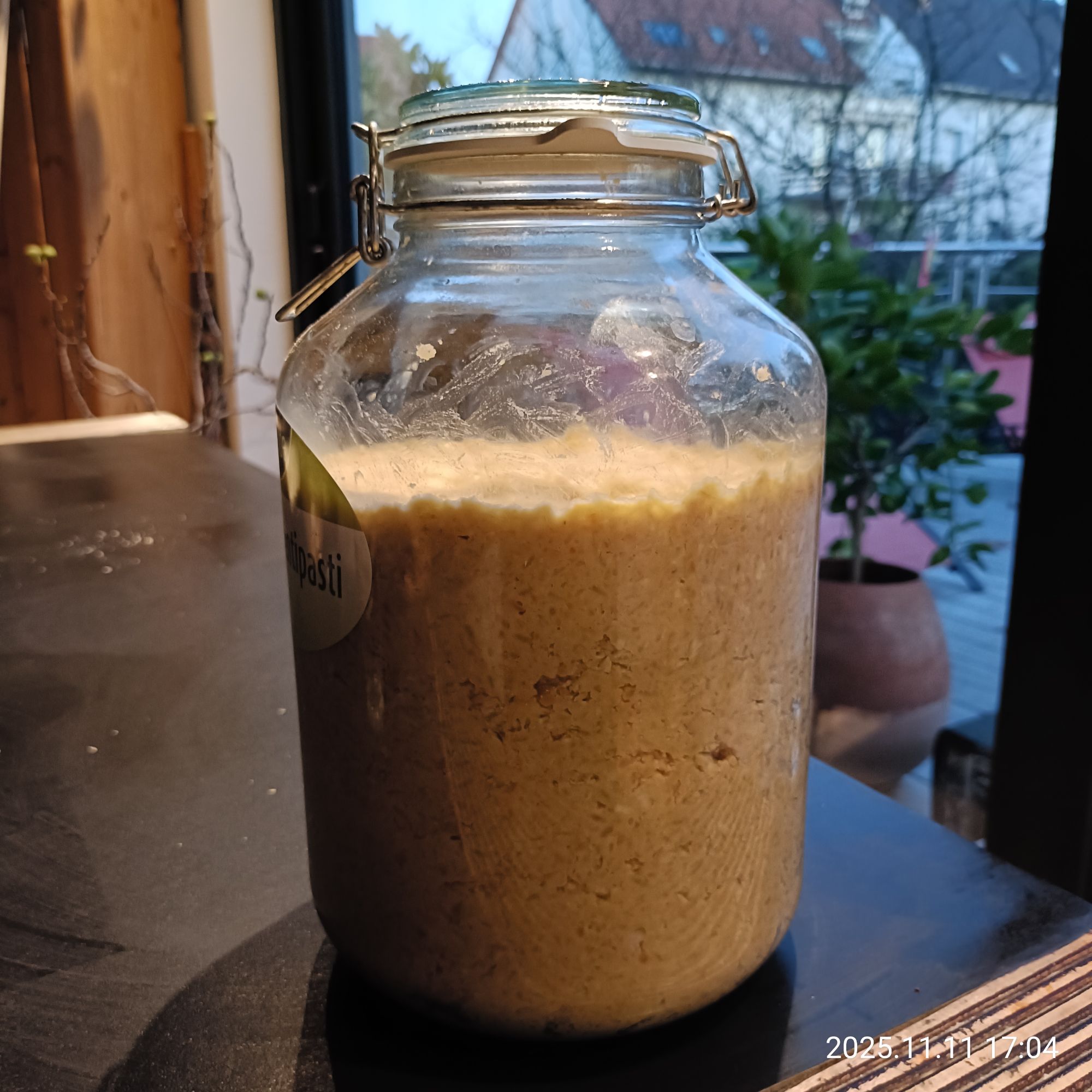 翌日、去年作ったものと比べてみたら明らかに色が違う!作ったばっかの時はただのしょっぱい大豆ペーストなのに、時間を置くとうまみたっぷりの味噌になるから本当に発酵って神秘😍さて、今年のお味噌はどんな味になるのか、のんびり待とうと思います😊