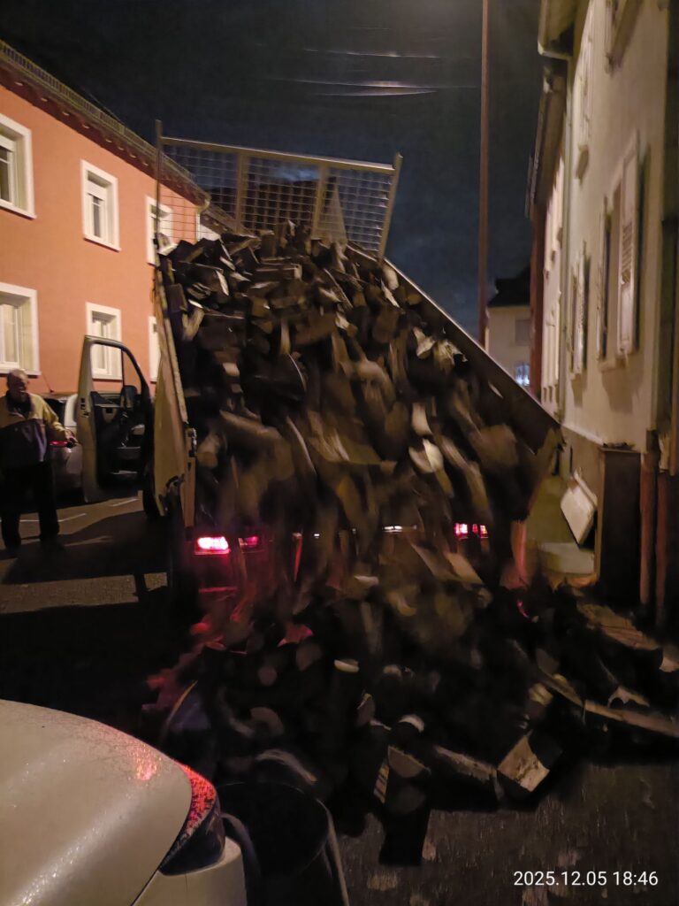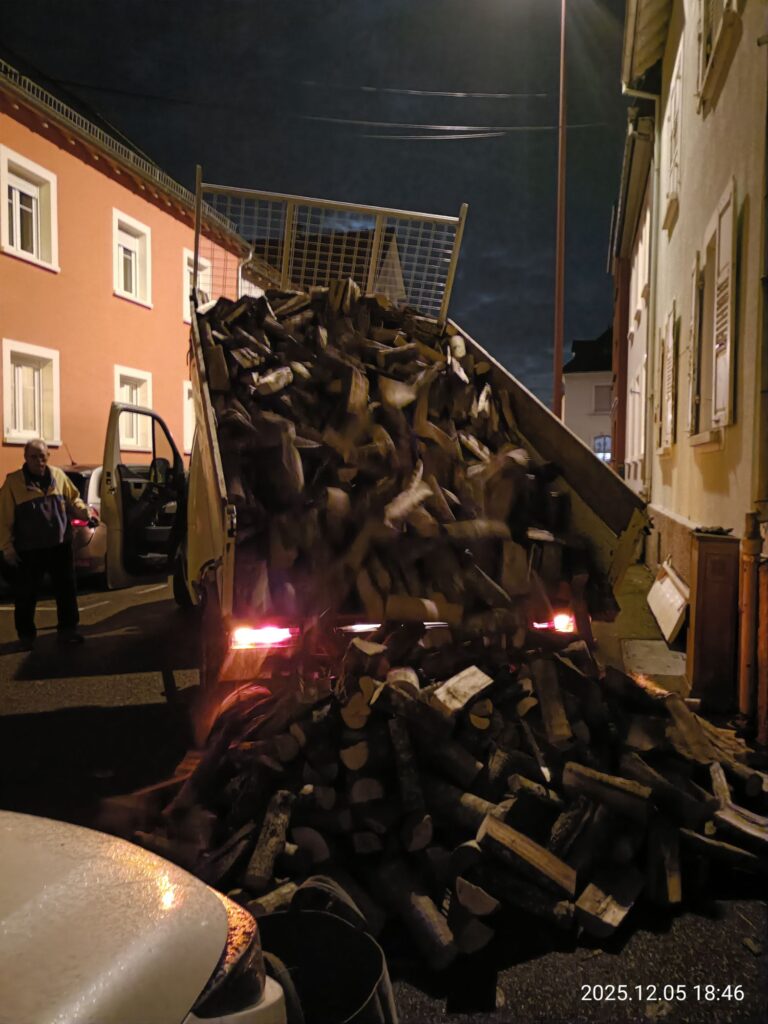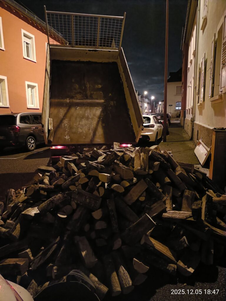 クリスマスマーケット帰りに今日は一仕事。前回もお願いしたいつもの薪屋さんに今回も4stère分運んでもらいました。料金は前回と同じく360ユーロでした。