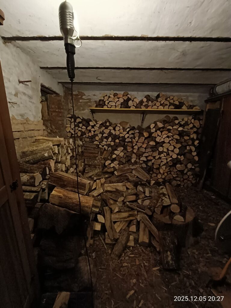 山盛り一杯の薪。これを一生懸命地下室に投げ入れます。