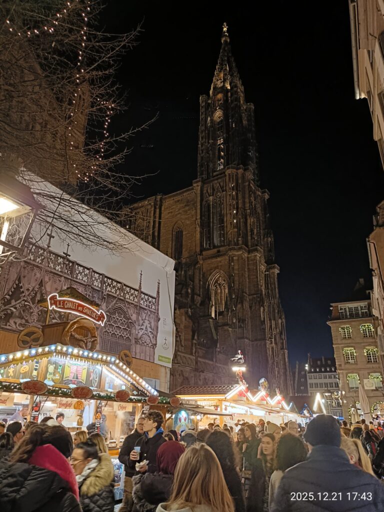 今回はストラスブール大聖堂前のクリスマスマーケットからスタート。