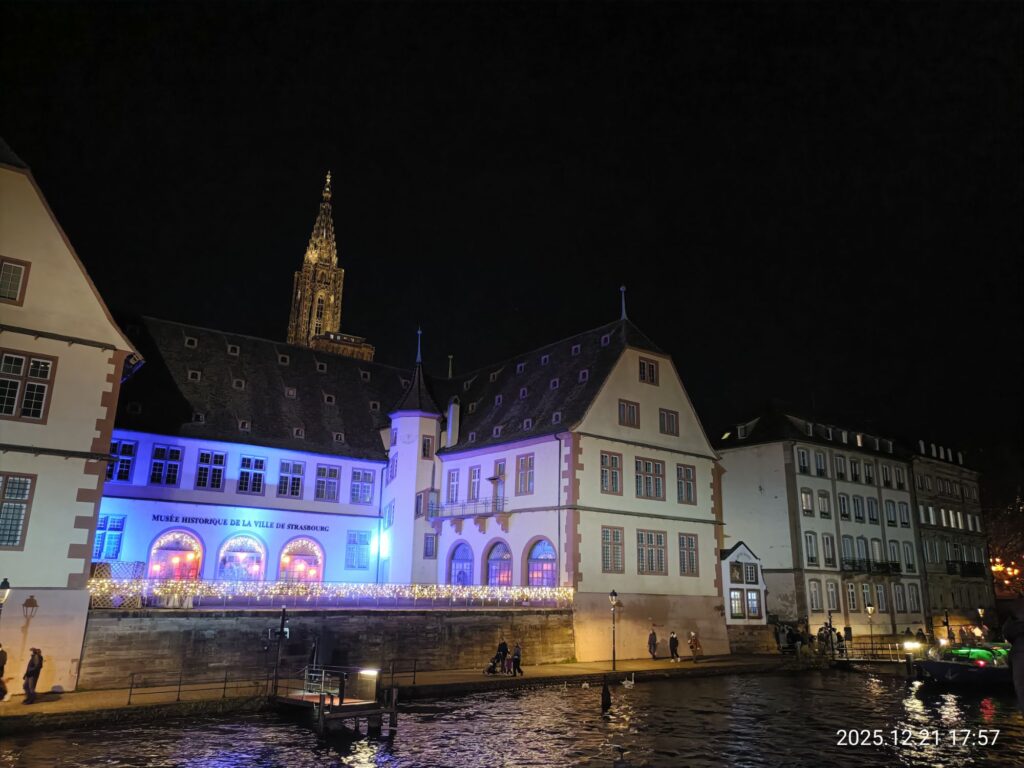 ストラスブール市立歴史博物館(Musée historique de la ville de Strasbourg)の外壁にはイルミネーション。