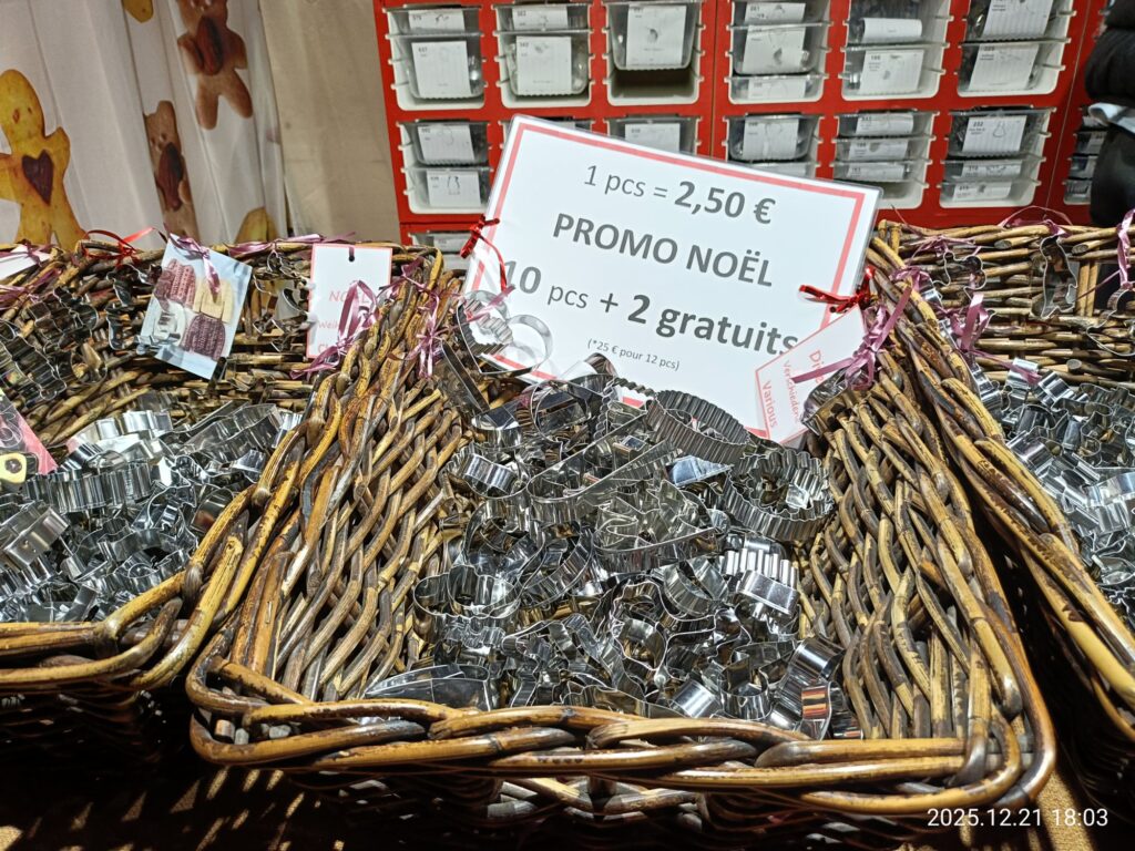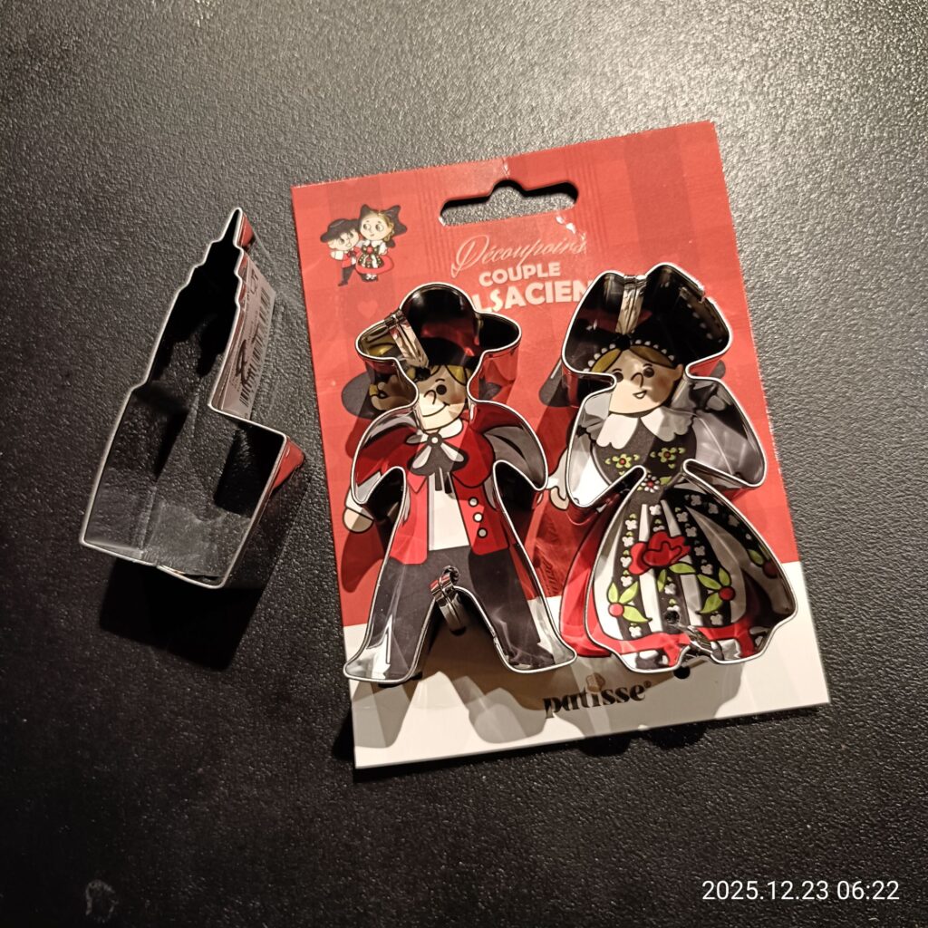 最終的に大聖堂の形のクッキー型(2€)とアルザスの伝統衣装のカップルのクッキー型(4€)を買ってしまいました😆まぁこれくらいの出費で済んだら御の字かな(笑)