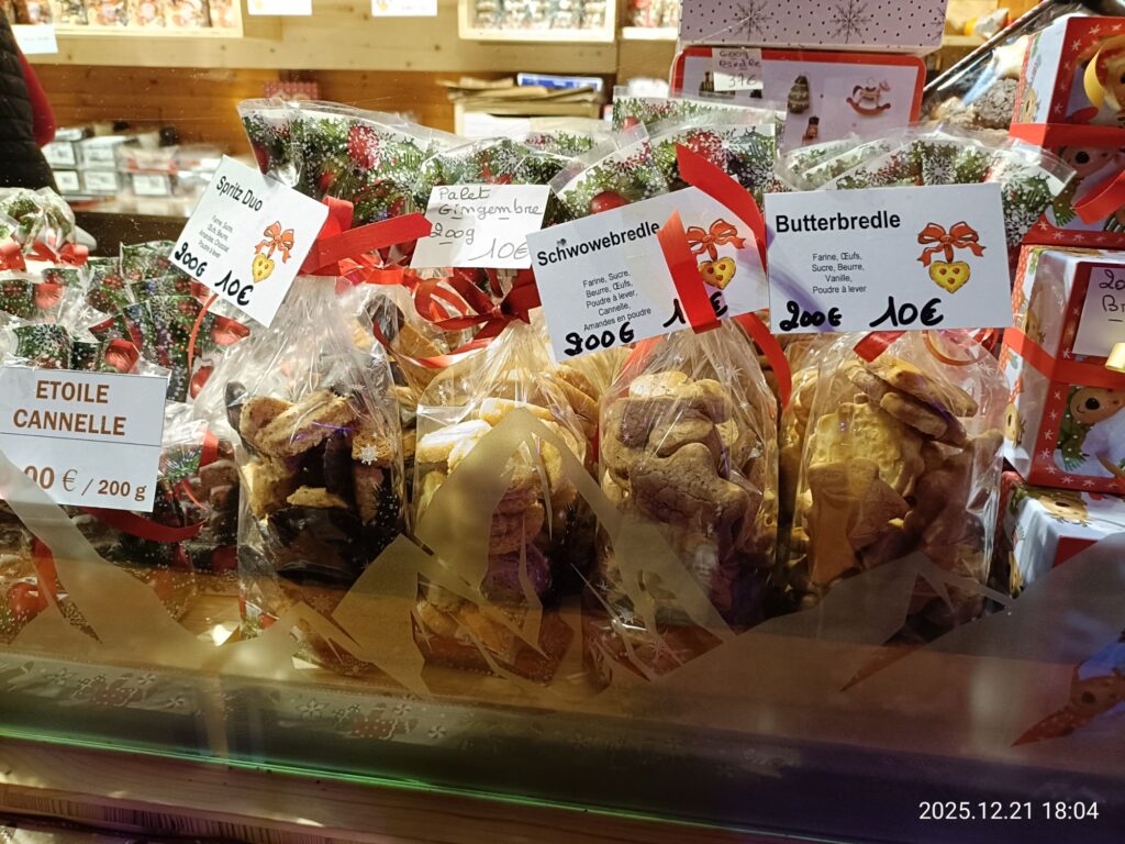 アルザス名物Bredele(=クッキーなどの一口サイズのお菓子)は200gで10€となかなかのお値段😁