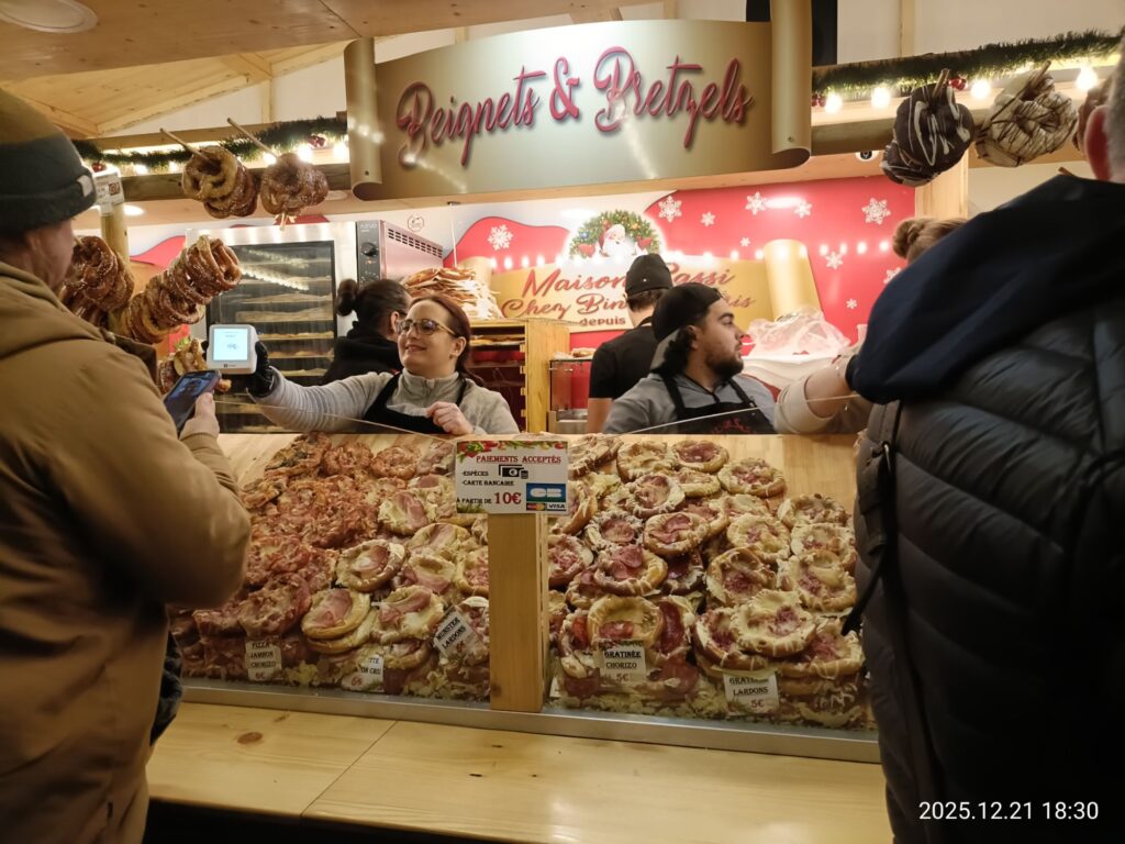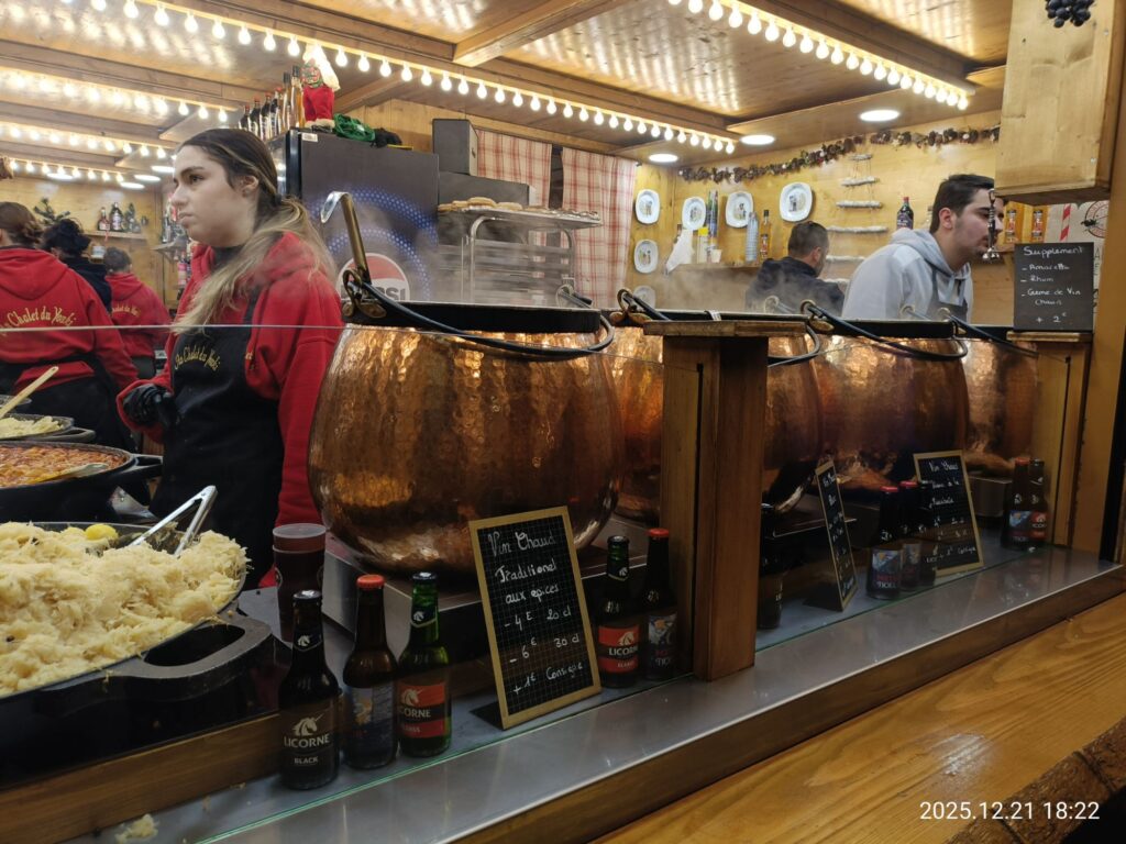 あちこちからラクレットチーズやマンステールなどのちょっと匂い強めのチーズのにおいが漂ってきます。これぞフランスのクリスマスマーケット😆