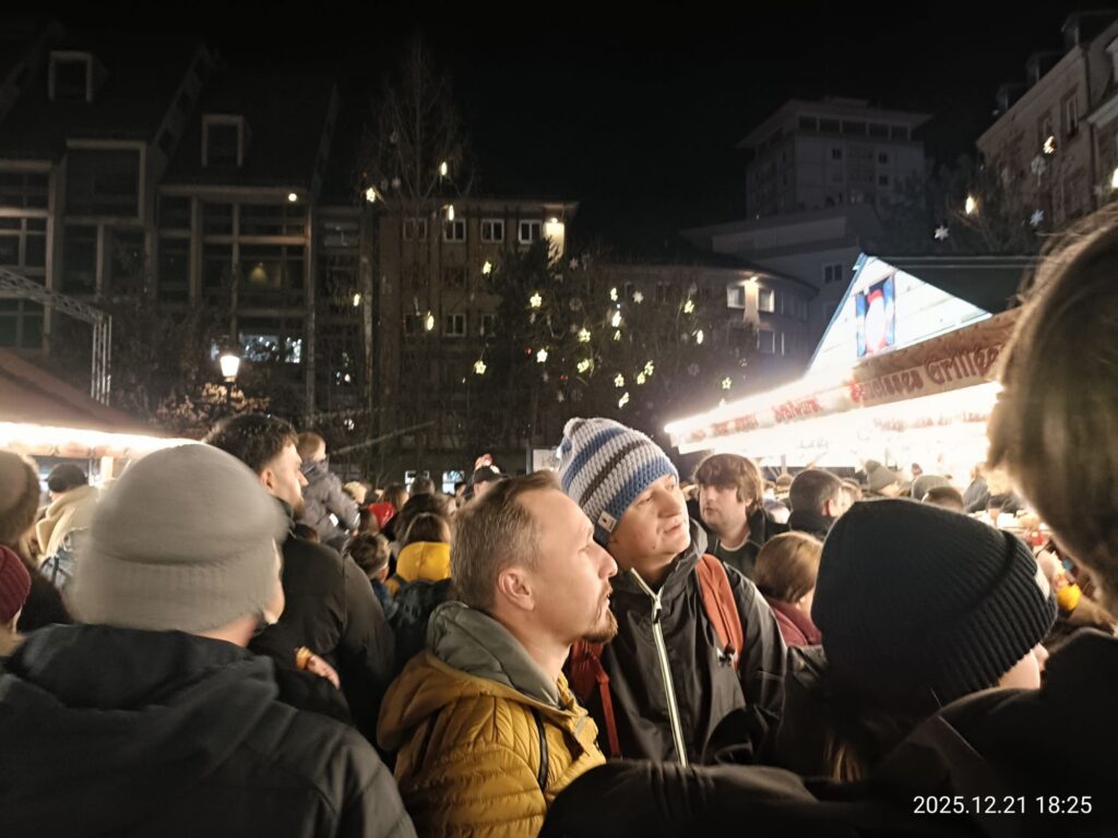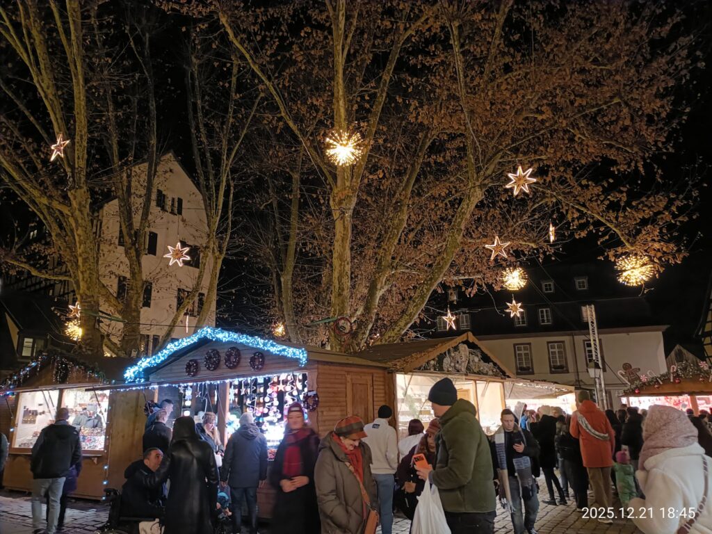 いよいよクリスマスを直前に控えた最後の日曜日。せっかくなのでめっちゃ劇込みなのを覚悟して改めてクリスマスマーケットに参戦!今回は夕方からなので昼間に散策した前回とはまた違った雰囲気。あちこちにイルミネーションが灯りクリスマスムード満点です😁