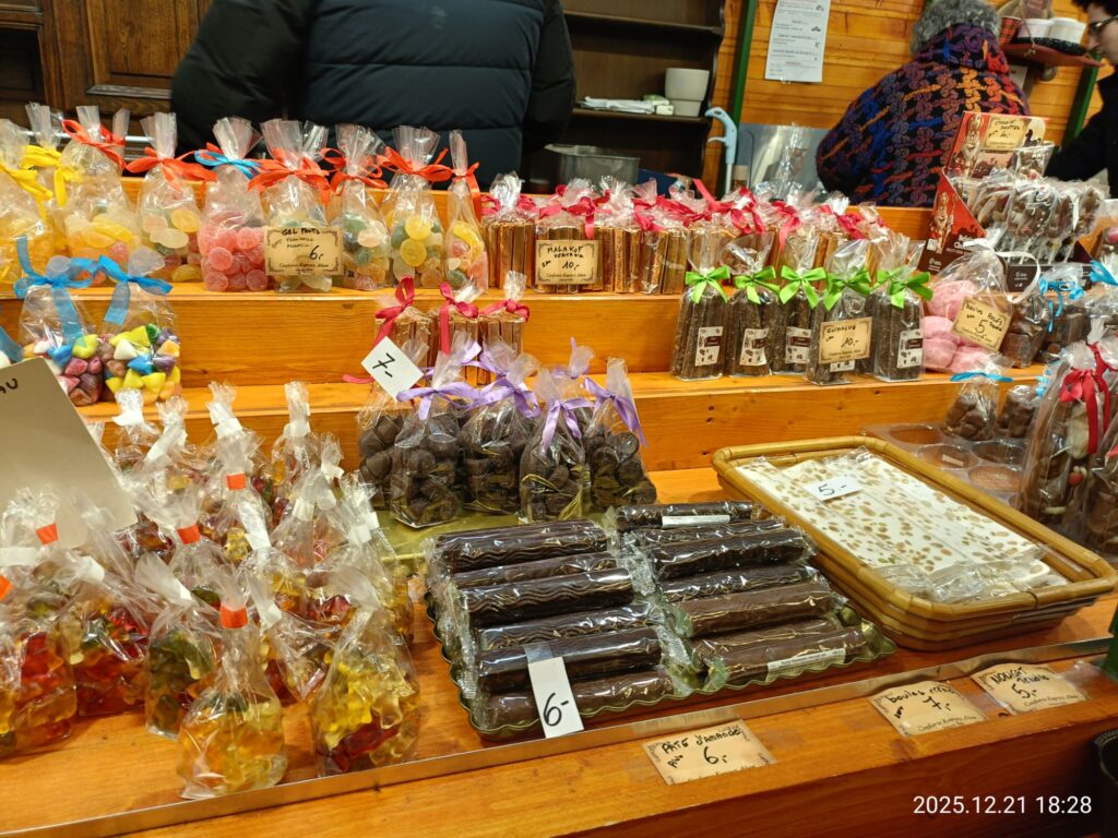 コンフィズリーのスタンド。ヌガー1包み6€。