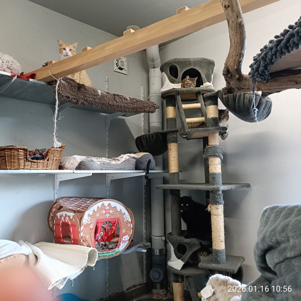 先週SPAでの初回ビジットを行い、今日は初めて猫チームのボランティア作業に参加してきました。午前中は各お部屋の掃除とのことで、猫砂の掃除、ねこちぐらや毛布が置いてある各棚の拭き掃除、水とえさの交換、床の水拭きなどを行いました。その間猫ちゃんたちは高いところや隅っこでこっちを見学(睨んでる…)(笑)