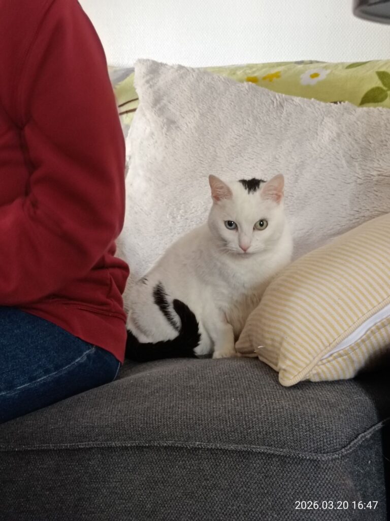 白猫でオッドアイのカマーちゃんがいます。どちらもとっても穏やかな猫ちゃんですが残念なことに2匹の仲はいまいち😅