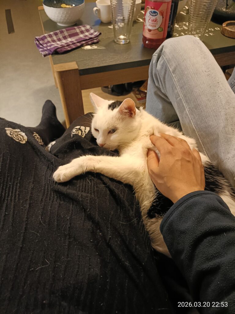 カマーちゃんがお膝に来てくれました~😍😍😍動けないけど幸せの極み。