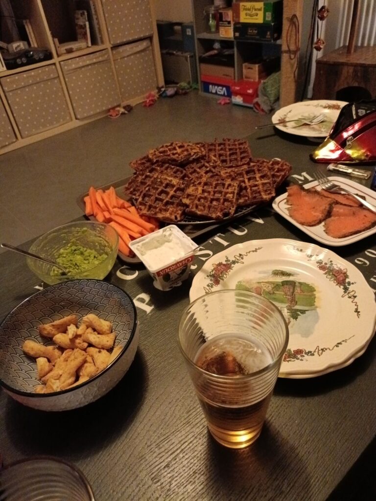 友達が用意してくれた夜ご飯。さつまいもとねぎの塩味ワッフル。とっても美味しくてワッフルメーカー欲しくなっちゃいました😆