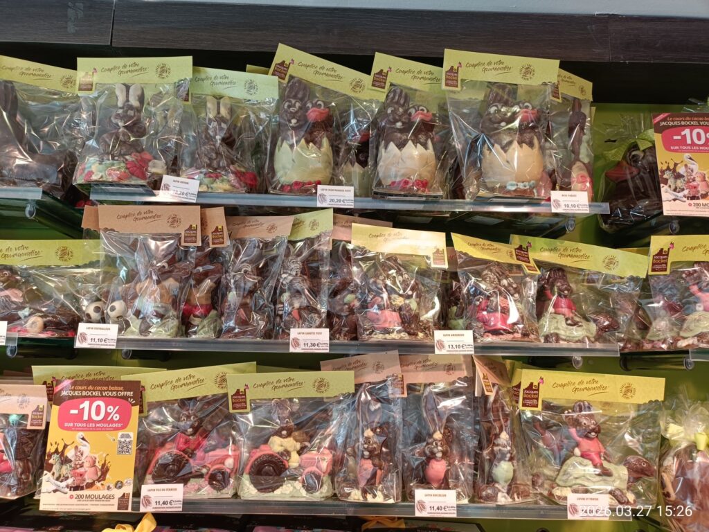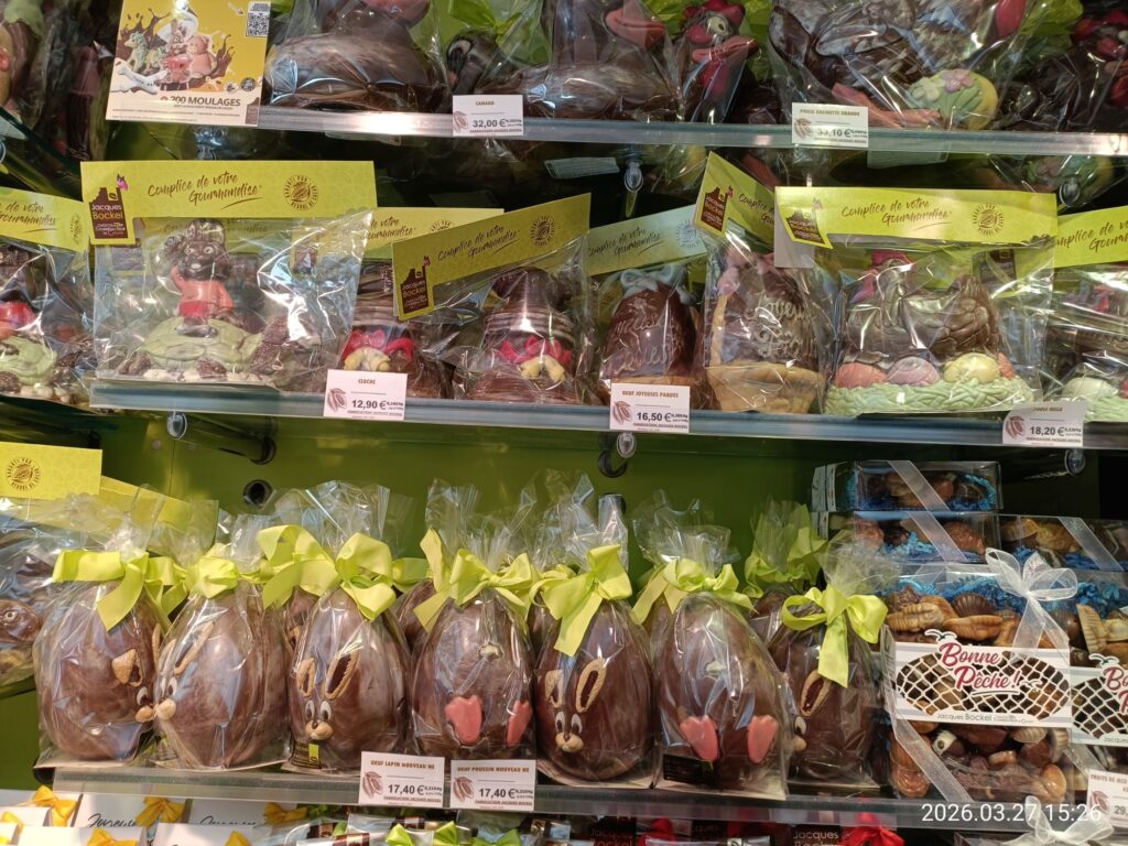 もうすぐイースターなので卵やウサギさんモチーフのチョコレートがたくさん。