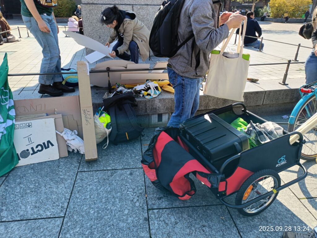 日曜日の午後、レオと私(私はちょこちょこ)参加しているAltanatibaという団体がメインで企画したデモの開催日。14時から始まるデモに合わせて13時から準備開始。